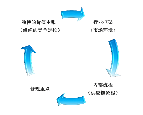 供應(yīng)鏈戰(zhàn)略是從企業(yè)戰(zhàn)略的高度來對供應(yīng)鏈進(jìn)行全局性規(guī)劃,它確定原材料的獲取和運(yùn)輸、產(chǎn)品的制造或服務(wù)的提供、產(chǎn)品配送和售后服務(wù)的方式與特點(diǎn)。一般情況下,組織的供應(yīng)鏈戰(zhàn)略是由四個(gè)要素之間的相互關(guān)系決定的,即行業(yè)框架(市場環(huán)境);獨(dú)特價(jià)值主張(組織的競爭地位)、管理重點(diǎn)(供應(yīng)鏈流程與業(yè)務(wù)戰(zhàn)略之間的聯(lián)系)以及內(nèi)部流程(供應(yīng)鏈流程)。